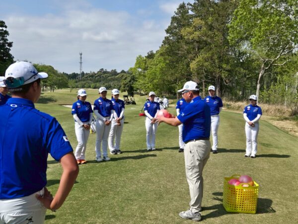 派遣大会への日本代表としての強化を目的とする強化合宿兼選考会が4月21~24日の4日間、茨城県のザ・ロイヤルゴルフクラブで行われ、2024年度3月31日時点の連盟ポイントランキング上位の高校生17人(男子9人、女子8人)が参加した。